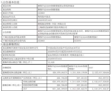 中国经济网北京9月17日讯 今日,摩根基金发布摩根中证A500指数增强型证券投资基金基金合同生效公告。