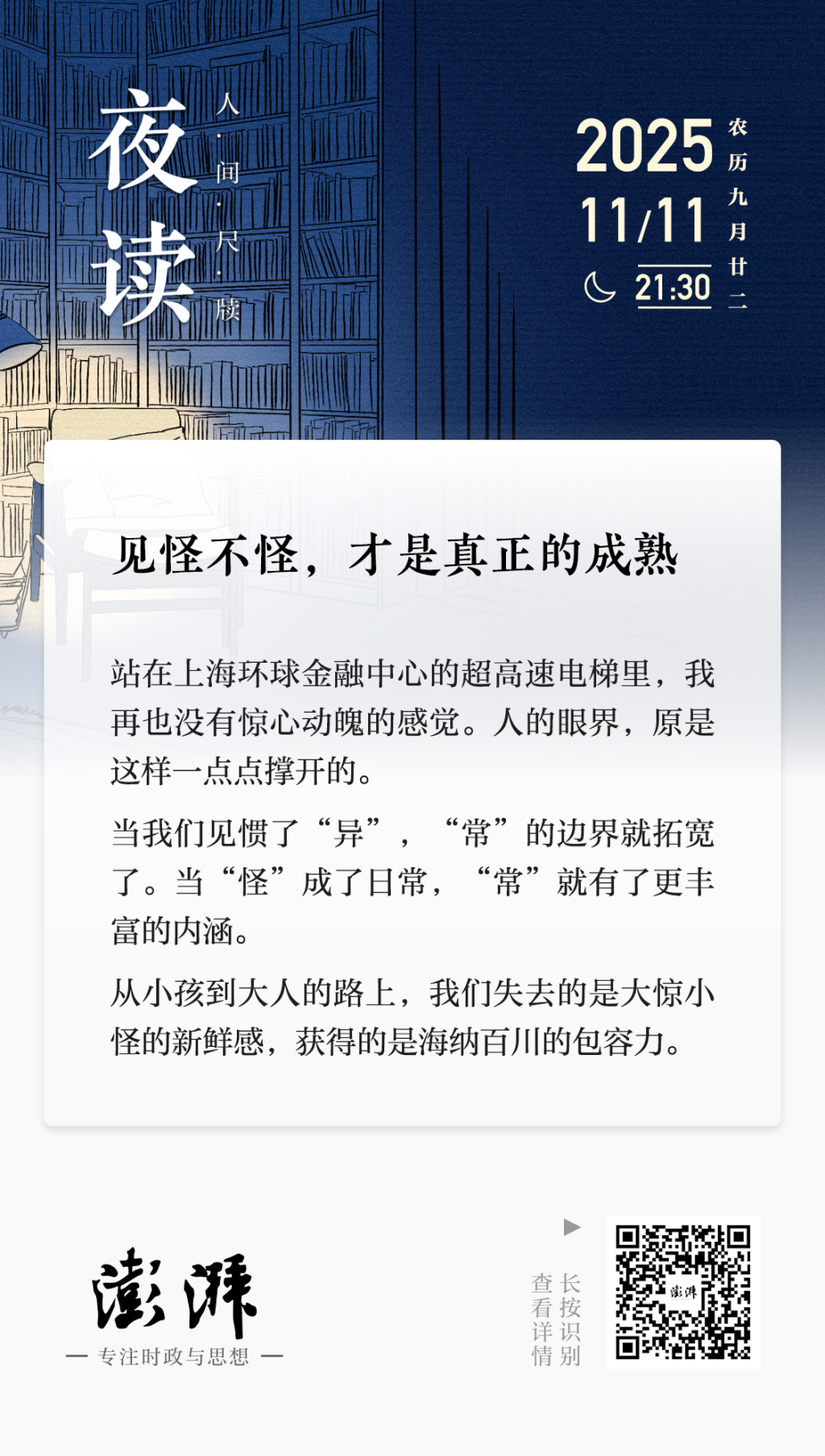 从害怕自动扶梯的小孩,到坦然面对认知冲突的成人,这条路上,我们失去的是大惊小怪的新鲜感,获得的却是海纳百川的包容力。世界原本纷繁,见怪不怪,或许才是真正的成熟。