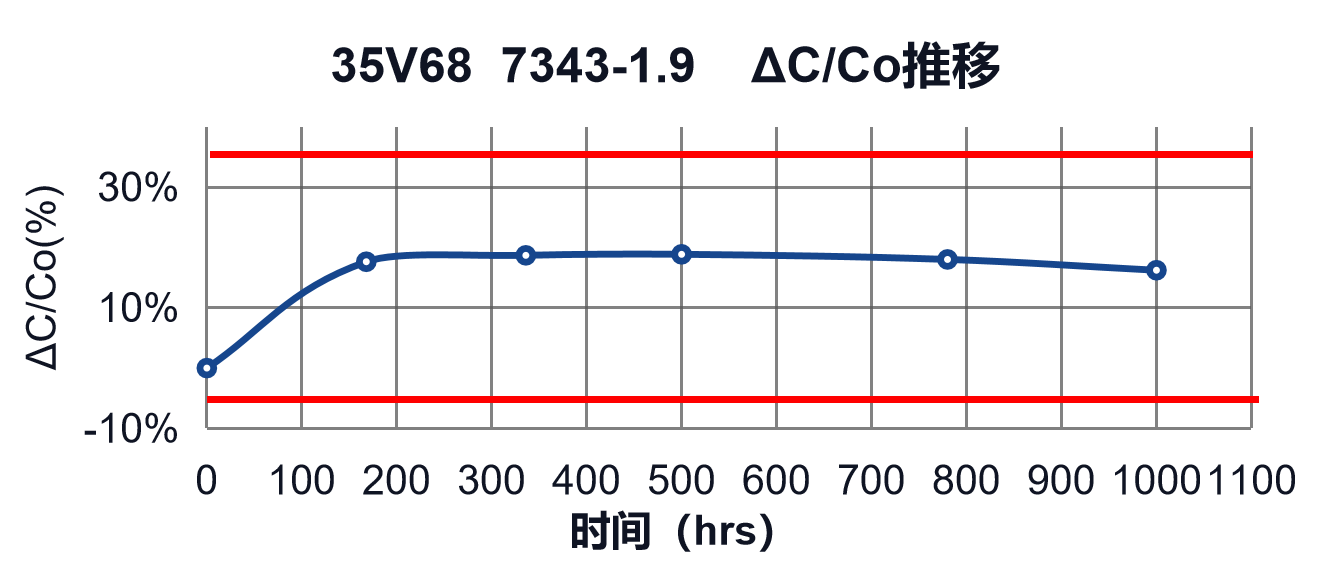 图3:35V68μF钽电容随时间推移ΔC/Co变化